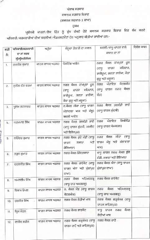 चंडीगढ़, 30 अगस्त- स्थानीय निकाय विभाग में कार्यरत कर्मचारियों के तबादले कर दिए गए हैं और एडजस्टमेंट भी की गईं हैं।