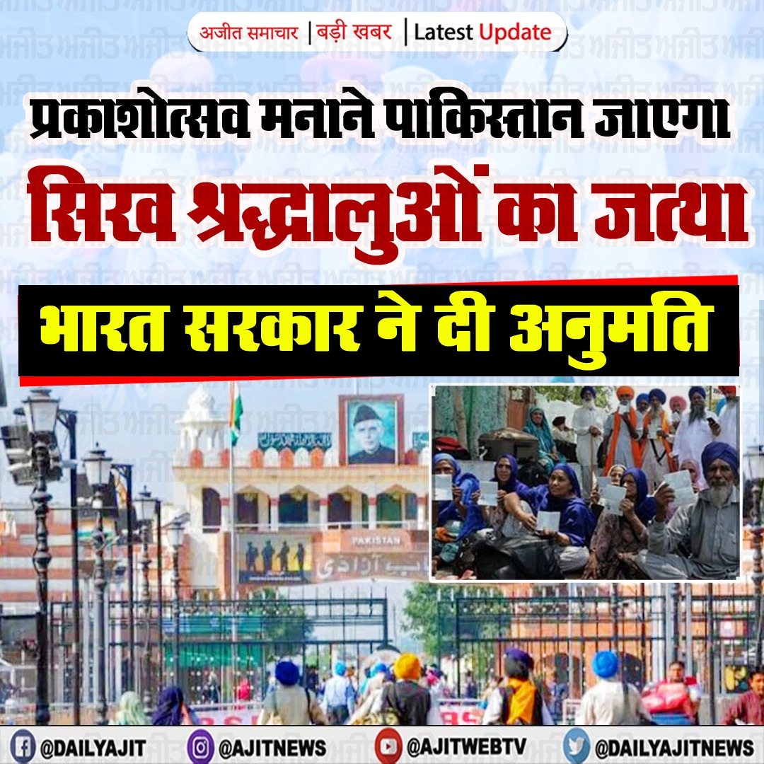 भारत सरकार ने शिरोमणि गुरुद्वारा प्रबंधक कमेटी और दिल्ली कमेटी को सिख जत्था पाकिस्तान भेजने की दी अनुमति