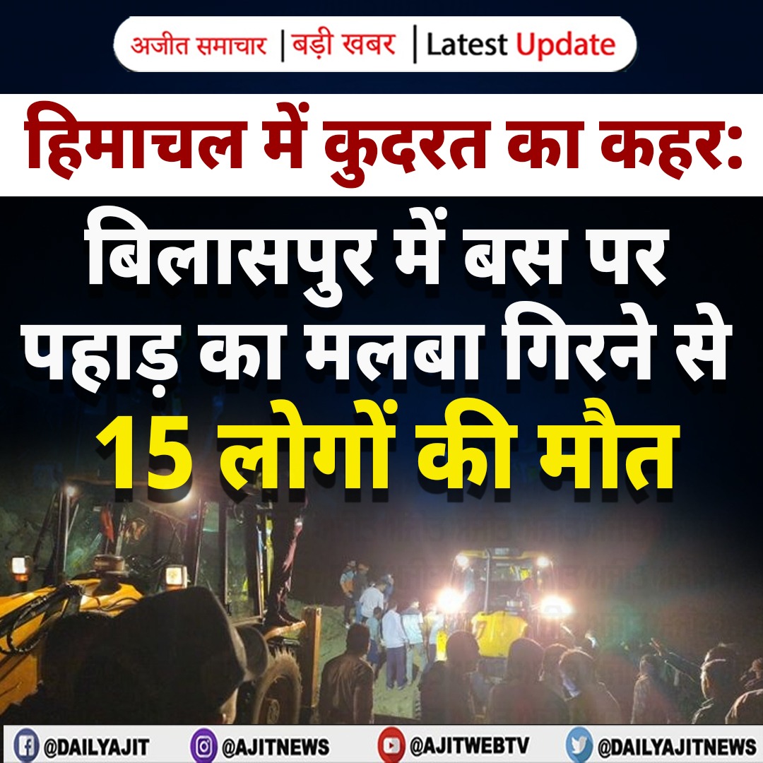 बिलासपुर में बस पर पहाड़ का मलबा गिरने से 15 लोगों की मौ.त