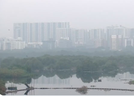 #मुंबई के बांद्रा कुर्ला कॉम्प्लेक्स के आसपास धुंध की हल्की परत छाई
