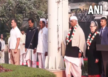 नई दिल्ली, 28 दिसंबर - कांग्रेस के राष्ट्रीय अध्यक्ष मल्लिकार्जुन खड़गे ने कांग्रेस के 140वें स्थापना दिवस के अवसर पर इंदिरा भवन पर कांग्रेस का ध्वज फहराया।