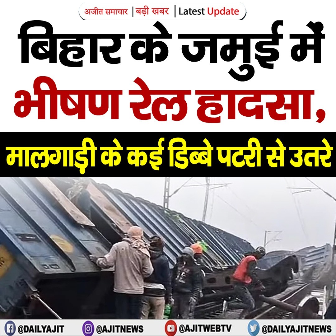 बिहार के जमुई में भीषण रेल हादसा, मालगाड़ी के कई डिब्बे पटरी से उतरे