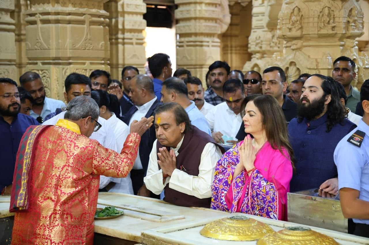 मुकेश अंबानी ने अपनी पत्नी और बेटे के साथ सोमनाथ मंदिर में की पूजा-अर्चना