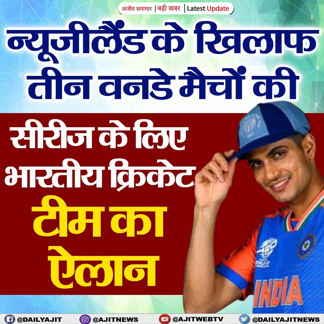 न्यूजीलैंड के खिलाफ तीन वनडे मैचों की सीरीज के लिए भारतीय क्रिकेट टीम का ऐलान