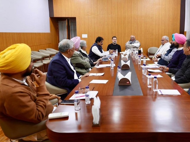 नई दिल्ली, 22 जनवरी - पूर्व मुख्यमंत्री और कांग्रेस MP चरणजीत सिंह चन्नी के जाति वाले बयान के बाद पॉलिटिक्स गरमा गई है। इसलिए, दिल्ली कांग्रेस हाईकमान ने आज दिल्ली में एक बड़ी मीटिंग की। इस मीटिंग को लोकसभा में विपक्ष के नेता और सीनियर कांग्रेस नेता राहुल गांधी और कांग्रेस के नेशनल प्रेसिडेंट मल्लिकार्जुन खड़गे ने लीड किया। इस मौके पर पंजाब कांग्रेस के स्टेट प्रेसिडेंट राजा वारिंग, चरणजीत चन्नी और प्रताप सिंह बाजवा के अलावा कई दूसरे सीनियर नेताओं को बुलाया गया है।