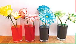 * अब एक एक फूल आधे पानी से भरे गुलदानों में रख दें। इस सेटअप के बाद फूलों को रंग बदलता हुआ देखें।