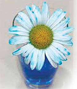 फूल ट्रिम किये हुए अपने तनों से रंगीन पानी को सोखने लगते हैं। यह पानी तनों में ऊपर उठकर फूलों व पत्तियों तक पहुंचता है। पौधों में जो सूक्ष्म ट्यूब होती हैं, उनके ज़रिये पानी केपिलरी एक्शन की वजह से ऊपर को चढ़ता है। गुलदानों के पानी में रंगीन डाई डालने की वजह से हम केपिलरी एक्शन को होता हुआ देख लेते हैं।