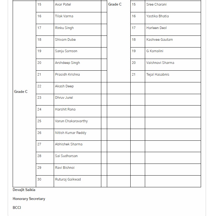 #BCCI द्वारा 2025-26 के लिए टीम इंडिया सीनियर पुरुष और सीनियर महिला खिलाड़ियों के कॉन्ट्रैक्ट की घोषणा