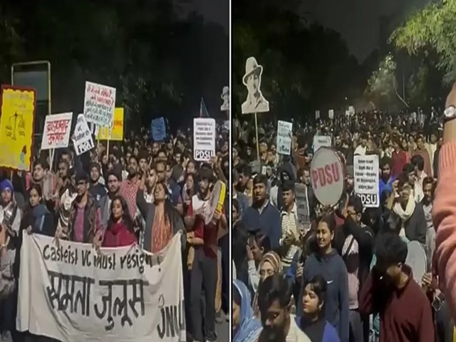 सोमवार सुबह करीब 1.30 बजे वाइस-चांसलर के खिलाफ एक प्रोटेस्ट के हिंसक होने के बाद जवाहरलाल नेहरू यूनिवर्सिटी (JNU) कैंपस में टेंशन बढ़ गई। लेफ्ट-विंग जवाहरलाल नेहरू यूनिवर्सिटी स्टूडेंट्स यूनियन ने रविवार रात ईस्ट गेट की ओर एक इक्वालिटी मार्च - 'समता जुलूस' - बुलाया था, जिसमें वाइस-चांसलर शांतिश्री धुलीपुडी पंडित के इस्तीफे और बर्खास्तगी की मांग की गई थी। जहां प्रोटेस्ट करने वालों ने आरोप लगाया कि एडमिनिस्ट्रेशन ने उनसे बात नहीं की और इसके बजाय ABVP मेंबर्स को उनसे भिड़ने दिया, वहीं राइट-विंग स्टूडेंट बॉडी ने हिंसा भड़काने के लिए लेफ्ट ग्रुप को दोषी ठहराया। विरोधी स्टूडेंट बॉडी द्वारा शेयर किए गए वीडियो में कथित तौर पर नकाबपोश लोग कैंपस में पत्थर फेंकते और लाठियां लेकर घूमते हुए दिख रहे हैं। लेफ्ट स्टूडेंट ग्रुप्स ने एक वीडियो शेयर किया जिसमें कुछ लोग कैंपस में पत्थर फेंकते दिख रहे हैं। उन्होंने आरोप लगाया कि जब वे प्रोटेस्ट के लिए इकट्ठा हुए तो ABVP के सदस्यों ने पत्थर फेंकना शुरू कर दिया। ABVP ने हिंसा शुरू होने से पहले कैंपस के अंदर नकाबपोश लोगों के घूमने के वीडियो भी शेयर किए।