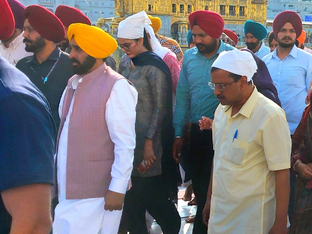 अरविंद केजरीवाल और पंजाब के मुख्यमंत्री भगवंत सिंह मान श्री हरमंदिर साहिब में माथा टेकने पहुंचे