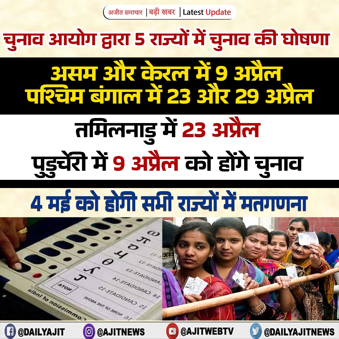 #भारत चुनाव आयोग ने 5 राज्यों/UTs में असेंबली इलेक्शन की तारीखों का किया ऐलान