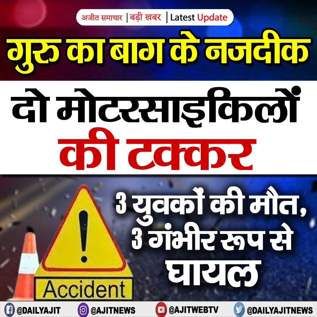 दो मोटरसाइकिलों की टक्कर में 3 युवकों की मौत, 3 गंभीर रूप से घायल