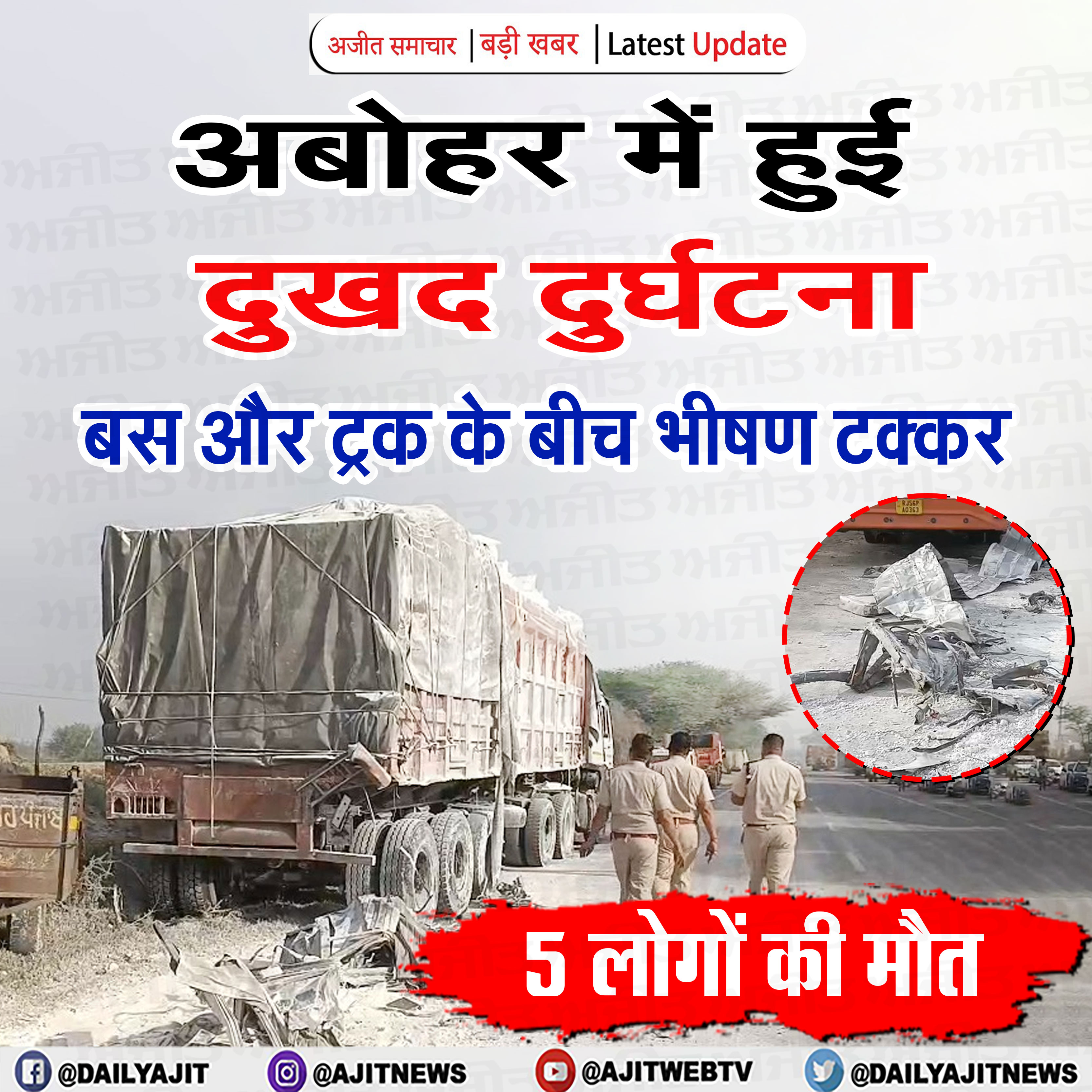 #पंजाब-राजस्थान बॉर्डर पर बस-ट्रक की टक्कर में 5 की मौत
