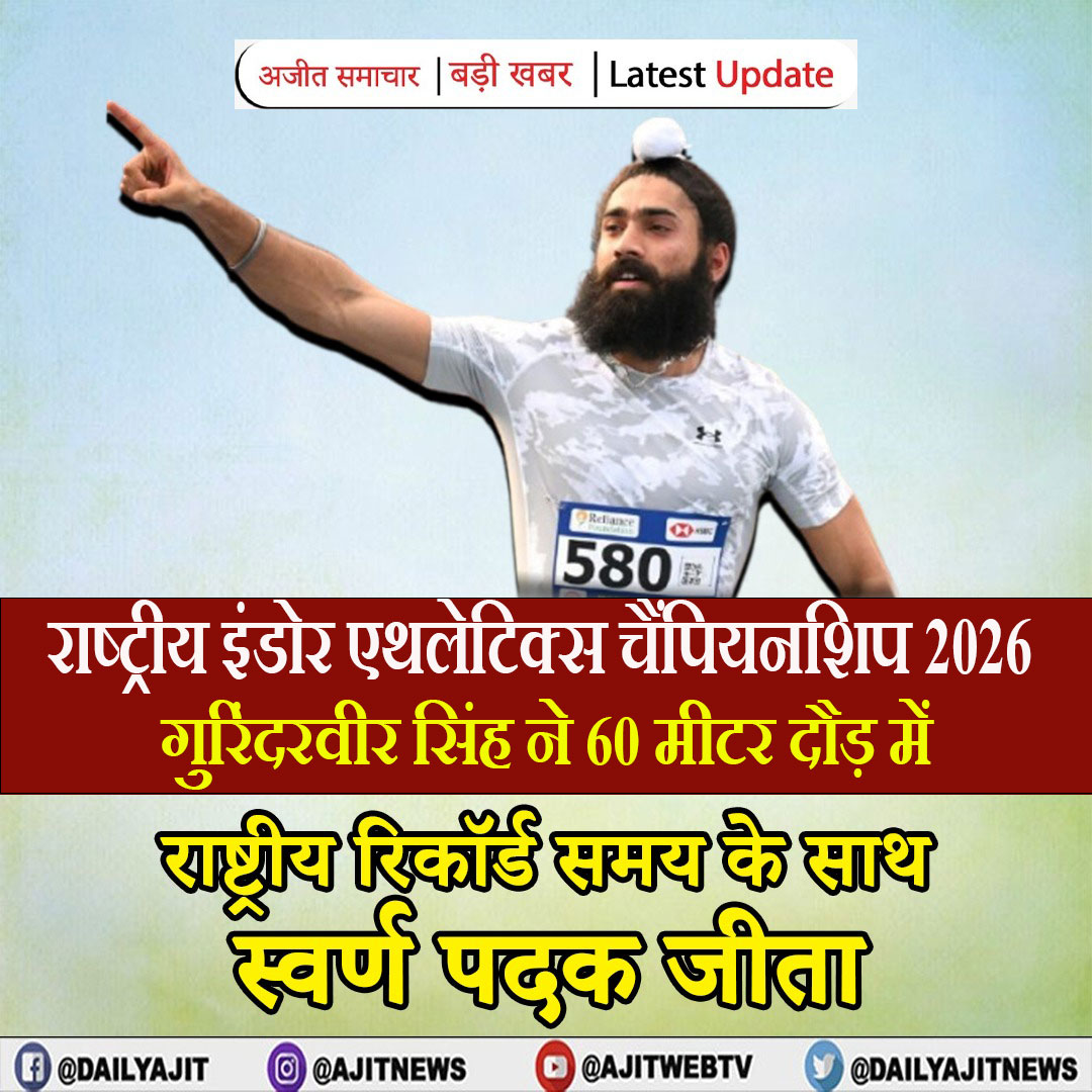 गुरिंदरवीर सिंह ने 60 मीटर दौड़ में राष्ट्रीय रिकॉर्ड समय के साथ स्वर्ण पदक जीता