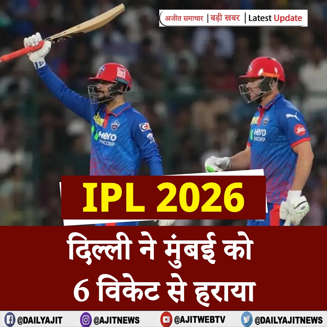 #IPL 2026: दिल्ली ने मुंबई को 6 विकेट से हराया