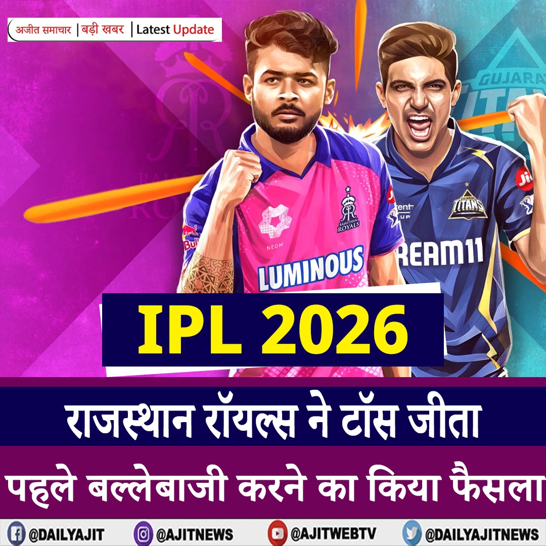 IPL 2026- राजस्थान रॉयल्स ने टॉस जीता, पहले बल्लेबाजी करने का किया फैसला