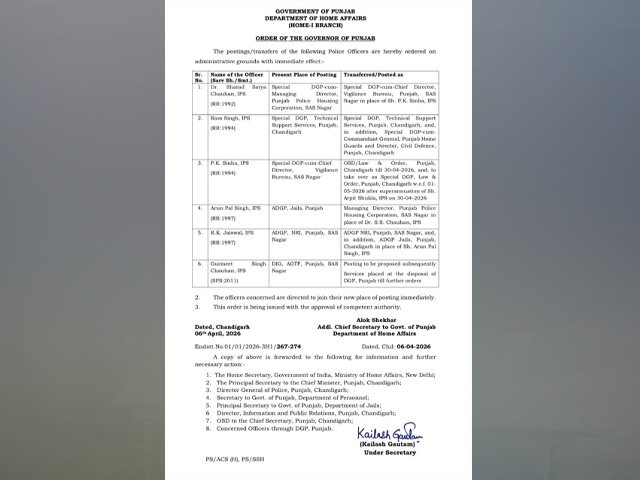 चंडीगढ़, 6 अप्रैल- पंजाब सरकार के होम डिपार्टमेंट ने IPS अधिकारियों का ट्रांसफर किया है। पूरी लिस्ट देखें...