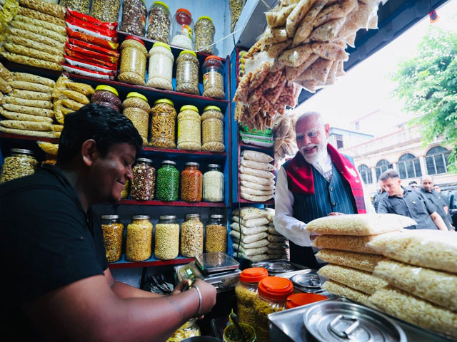 कोलकाता, 19 अप्रैल - प्रधानमंत्री नरेंद्र मोदी का पश्चिम बंगाल विधानसभा चुनावों में रविवार को अनूठ अंदाज सामने आया है। पीएम मोदी ने झारग्राम में झालमुरी का मजा लिया। वह एक स्थानीय दुकान पर पहुंचे और आवाज लगाकर कहा कि भाई मुझे अच्छा बाला झालमुरी खिलाओ। पीएम मोदी ने दुकानदार को रुपये भी दिए। जब दुकानदार ने पूछा कि सर प्याज खाते हैं तो पीएम मोदी ने कहा हां बस प्याज खाता हूं। बस दिमाग नहीं खाता हूं। पीएम मोदी ने इसके बाद दुकानदार को 10 रुपये भी दिए। दुकानदार ने जब रुपये लेने से मना किया तो पीएम मोदी ने कहा नहीं ऐसा नहीं।