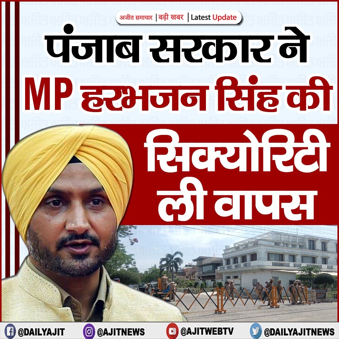 हरभजन सिंह के पर्सनल सेक्रेटरी मंदीप सिंह ने फोन पर जानकारी देते हुए बताया कि पंजाब सरकार ने कल पुलिस सिक्योरिटी वापस ले ली थी। पंजाब सरकार ने नौ से दस सिक्योरिटी वाले और एक सरकारी गाड़ी वापस ले ली थी।