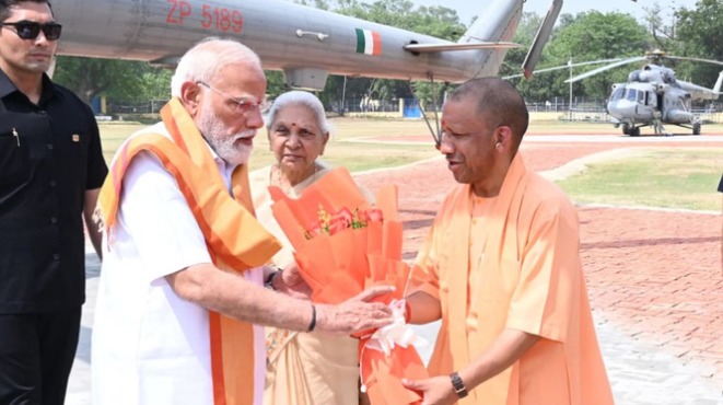 काशी , 28 अप्रैल पीएम मोदी काशी दौरे पर पहुंच गए हैं। राज्यपाल आनंदीबेन पटेल, मुख्यमंत्री योगी आदित्यनाथ समेत अन्य मंत्रियों ने पीएम का एयरपोर्ट पर स्वागत किया। भाजपा के राष्ट्रीय अध्यक्ष नितिन नवीन भी उपस्थित रहे। स्वागत के बाद पीएम मोदी हेलिकॉप्टर से बरेका के लिए रवाना हुए।